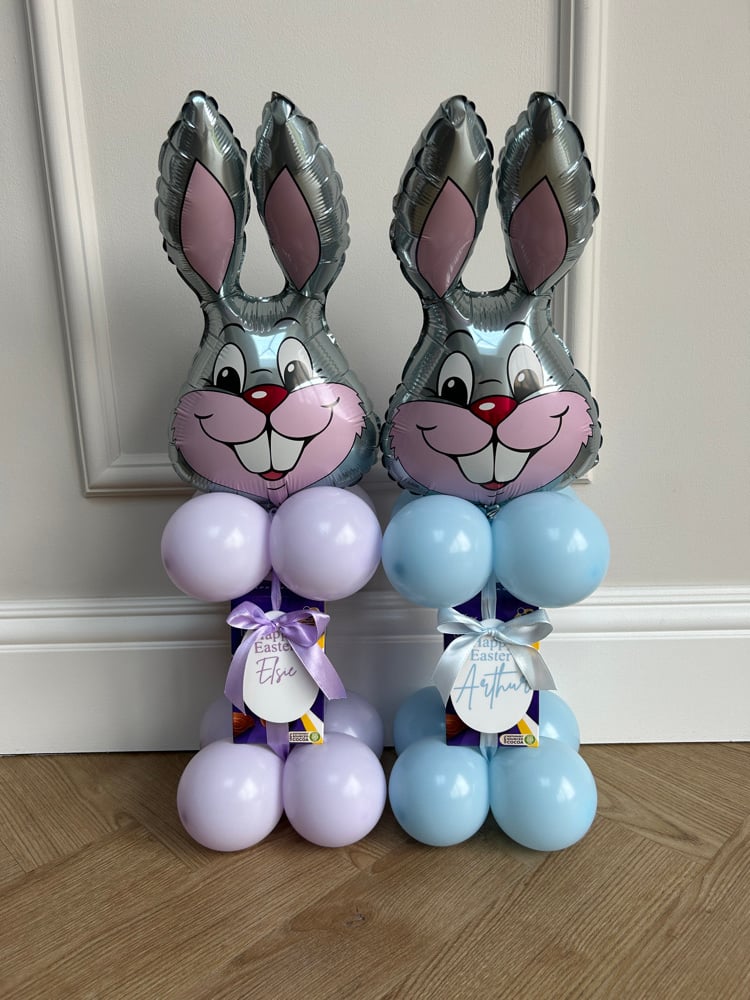 Our bunnies include an Easter egg of your choice on a stack of balloons with a personalised ‘Happy Easter’ tag including your little one’s name. They also come in 4 different colours